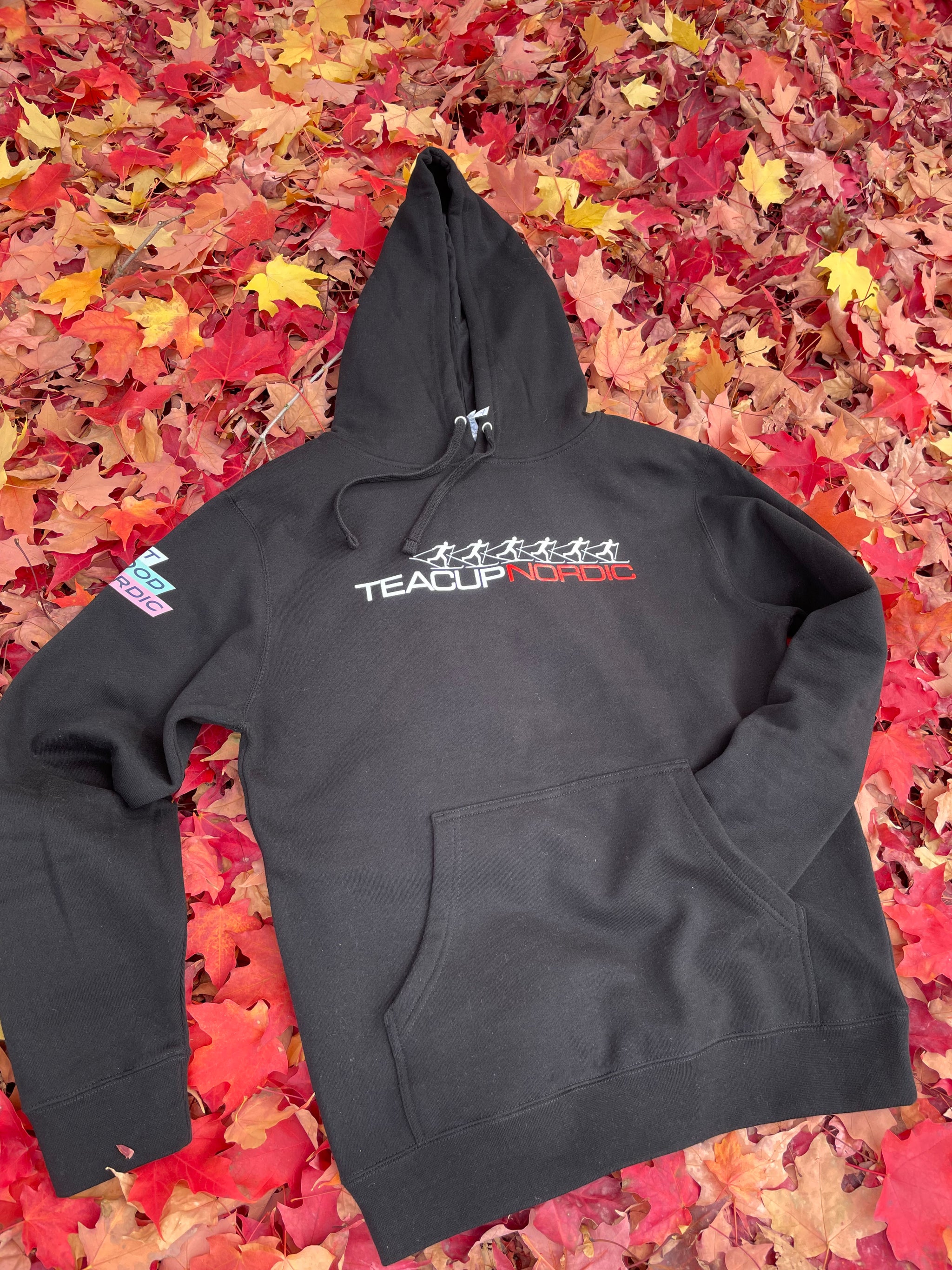 A quality medium weight hooded sweatshirt with Teacup on the front and Mt Hood Nordic on the right shoulder. Perfect for crisp fall mornings and snuggling into after a great day skiing at Teacup!